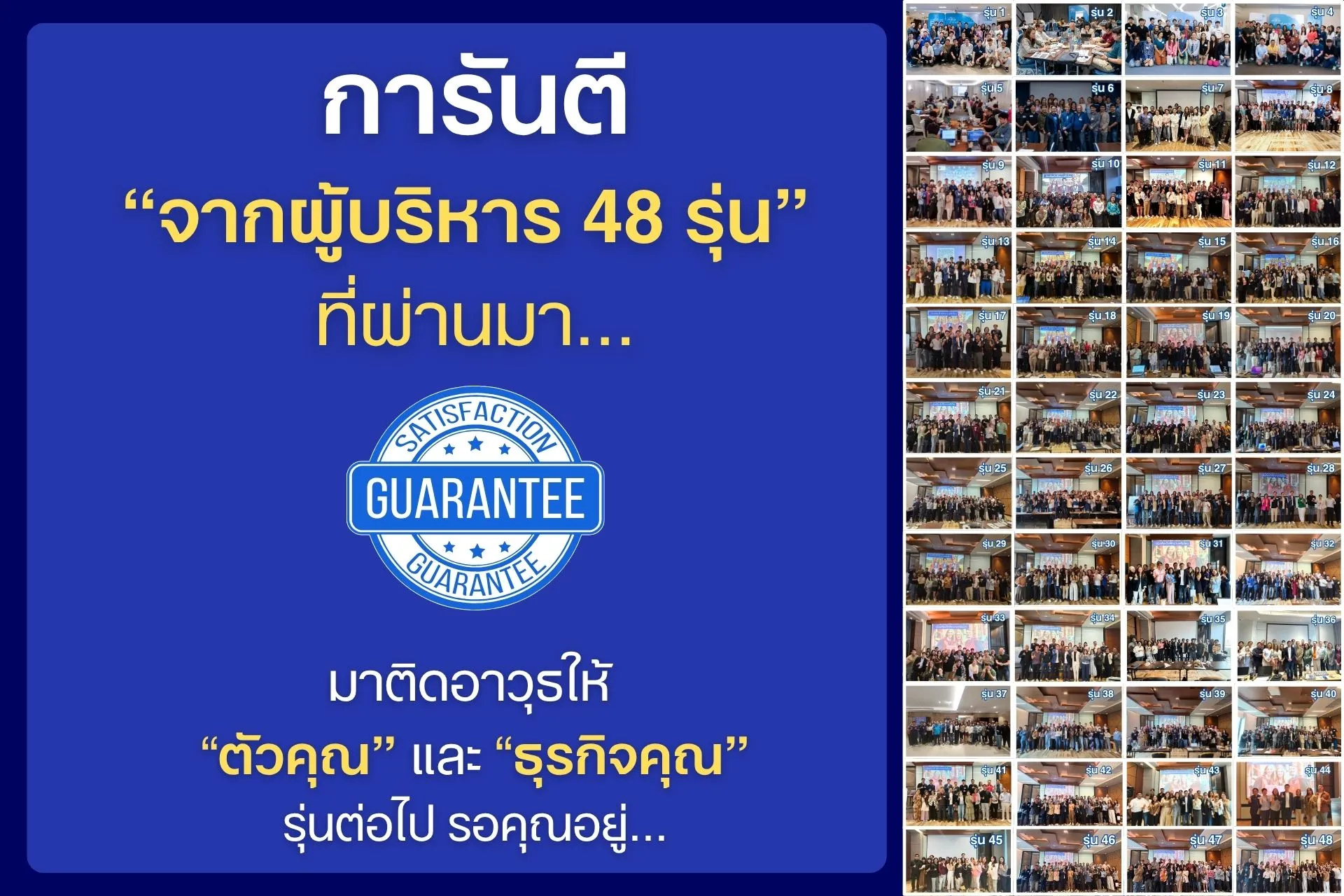 ไม่ต้องกังวล ทางเราจะมีวิทยากรภาคสนาม ที่คอยดูแลท่านอย่างใกล้ชิด สามารถสอบถามได้ถ้ากังวลในการยกมือถาม หรือกลัวที่จะเรียนไม่ทัน จากประสบการณ์ที่ผ่านมา เราช่วยให้ทุกคนสามารถนำไปใช้ได้จริงทุกท่าน